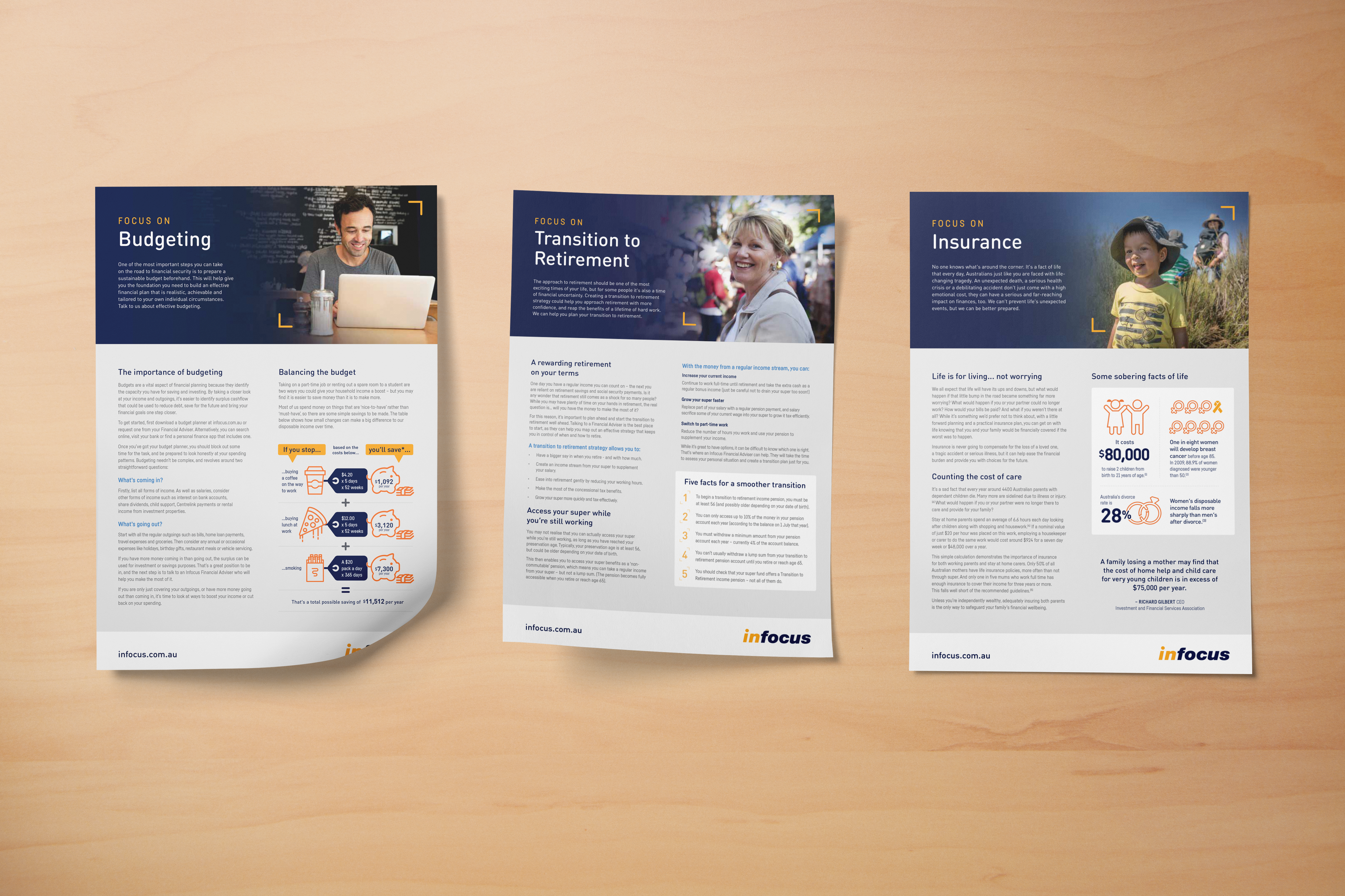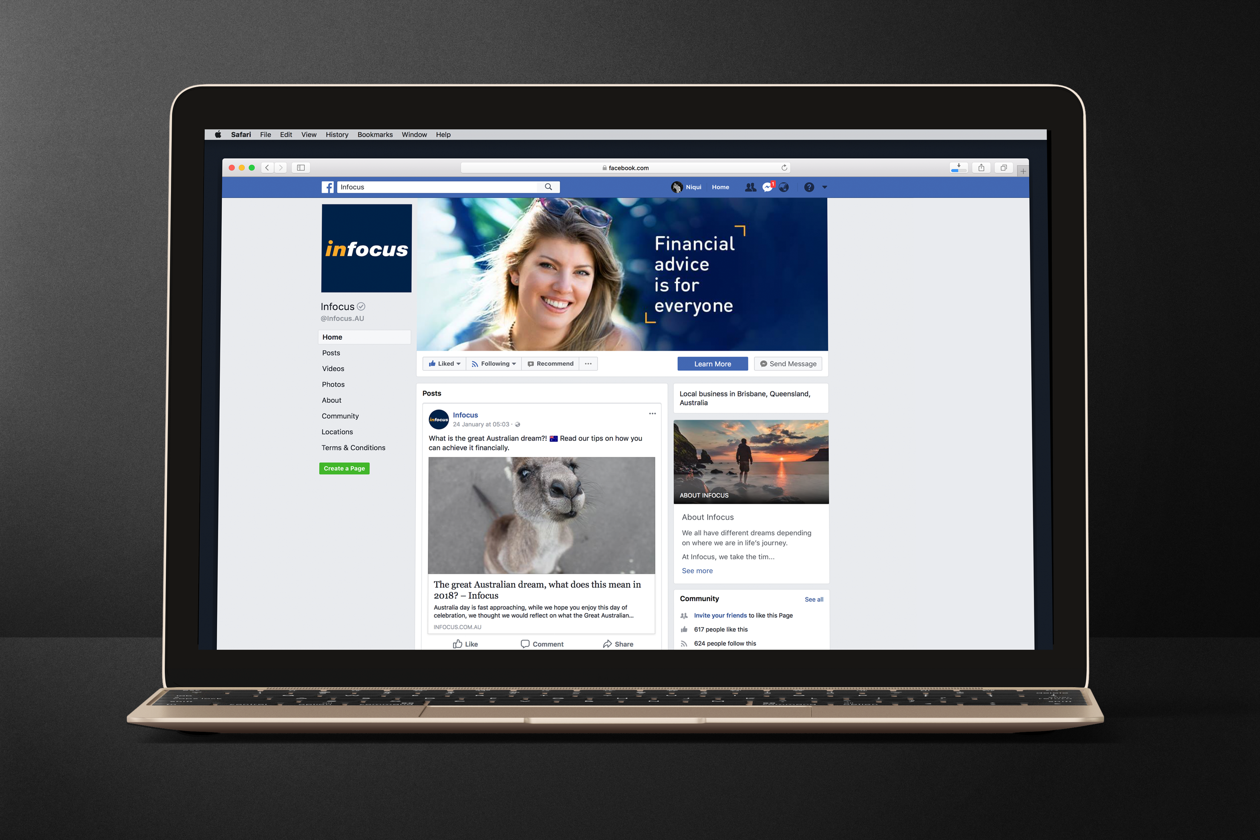 The Infocus Group commissioned me to rebrand their national wealth management organisation. I refreshed the logo and colour palette and then completely overhauled the look and feel of the entire brand to integrate a more human element. Since the roll out the group has seen a 200% increase in brand exposure and engagement with their customers has improved across all social and digital assets.
