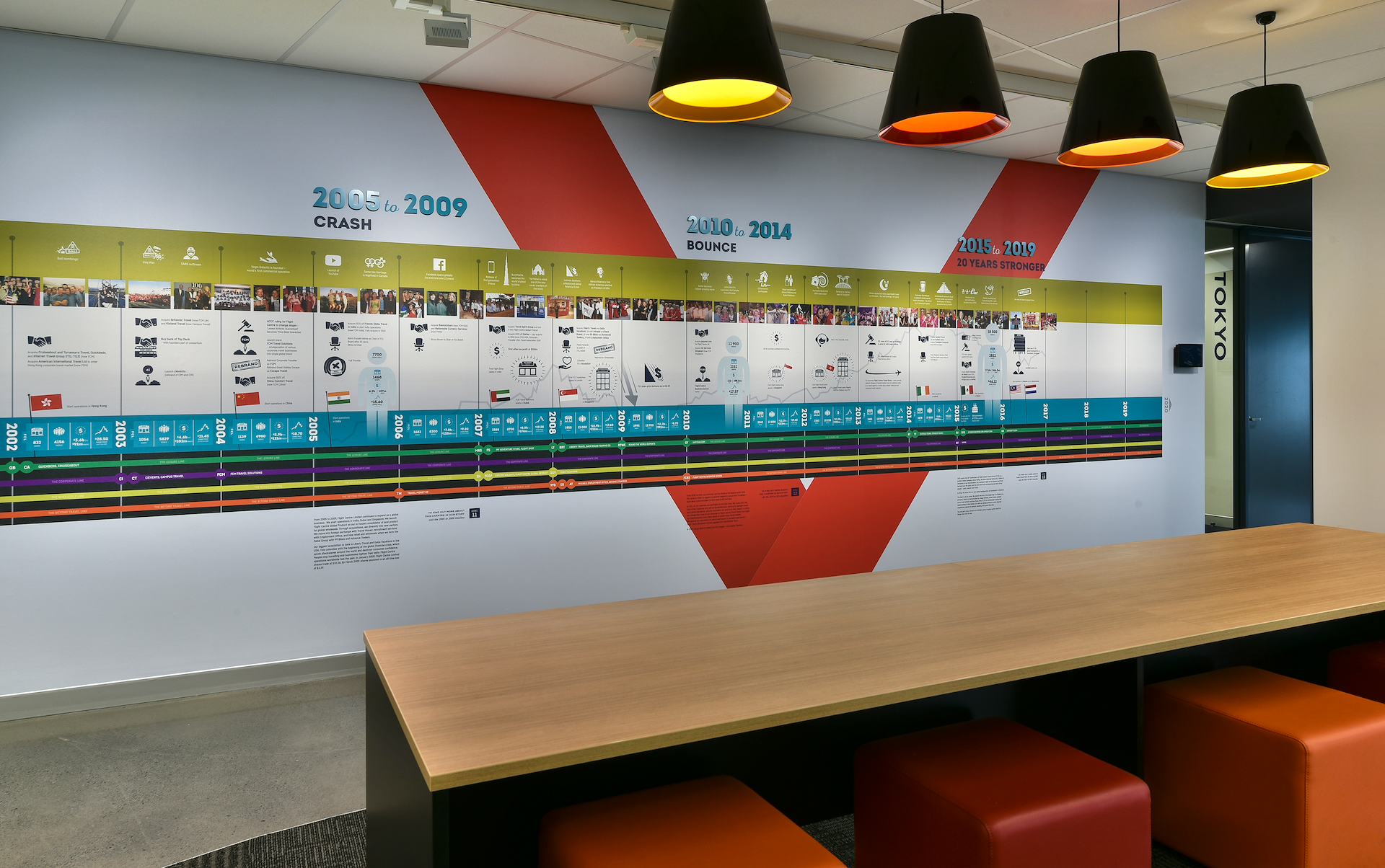 Level 10 – Zoom in timeline 2000 – 2004. Extruded panels and acrylic type headline.