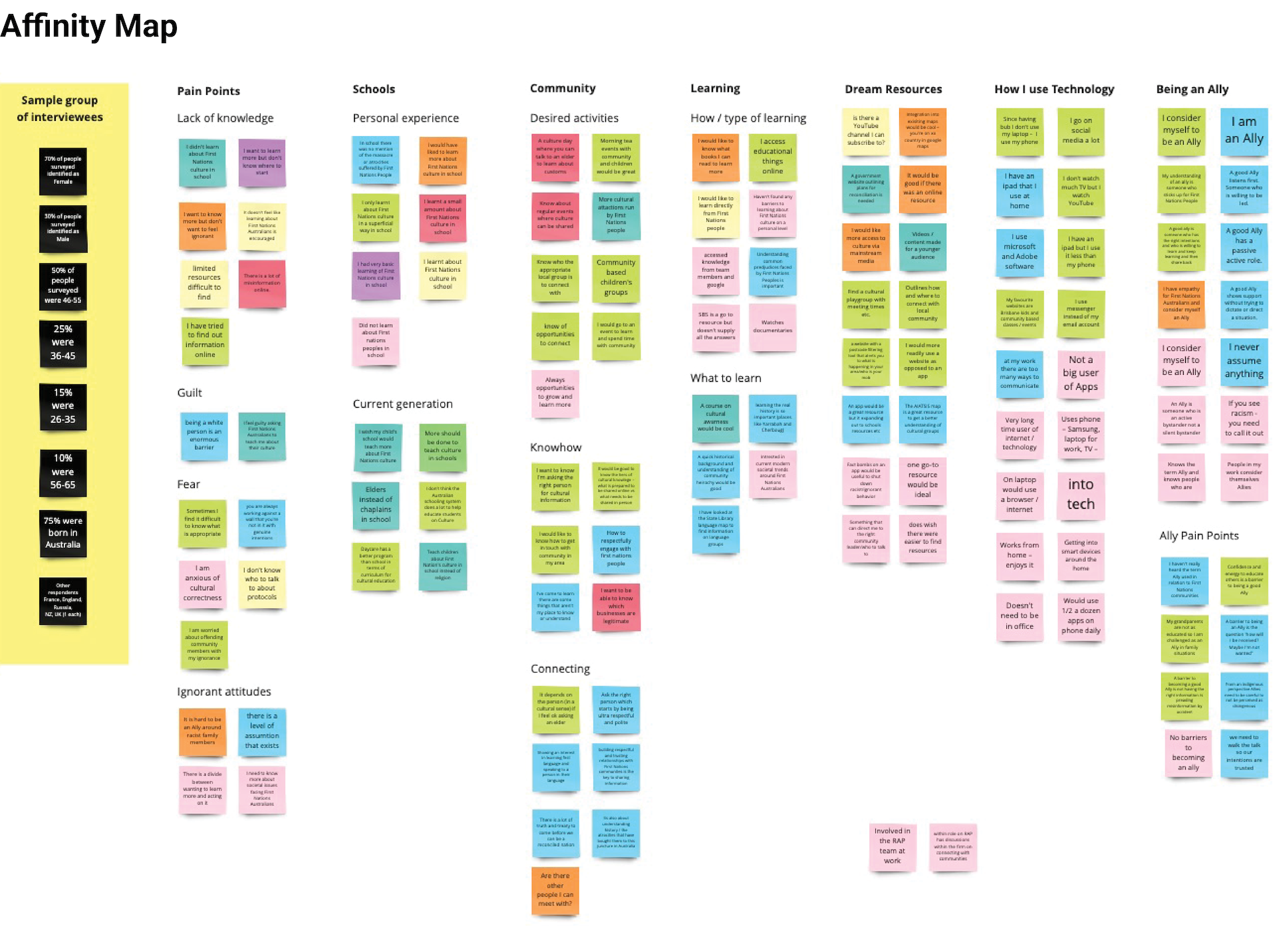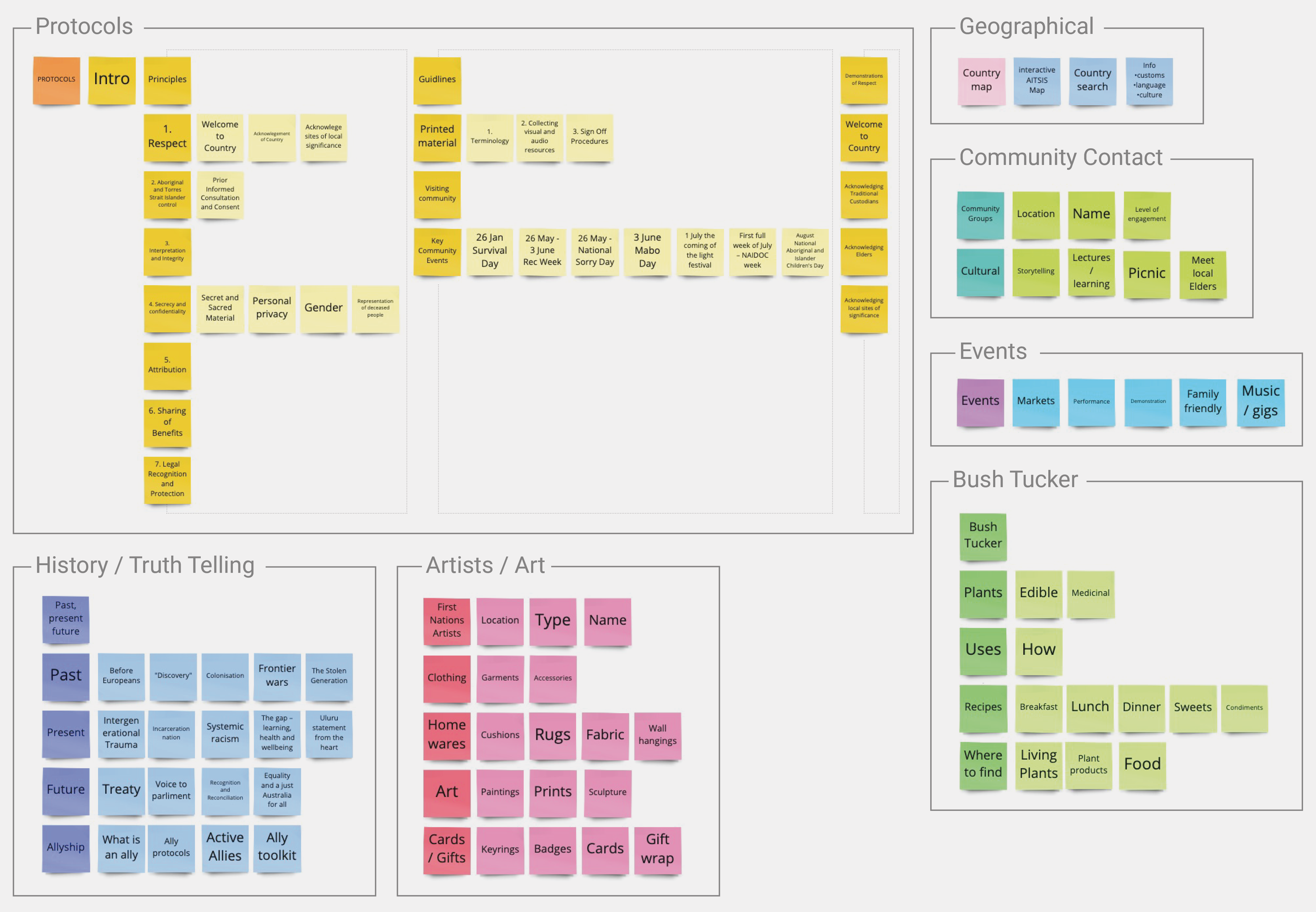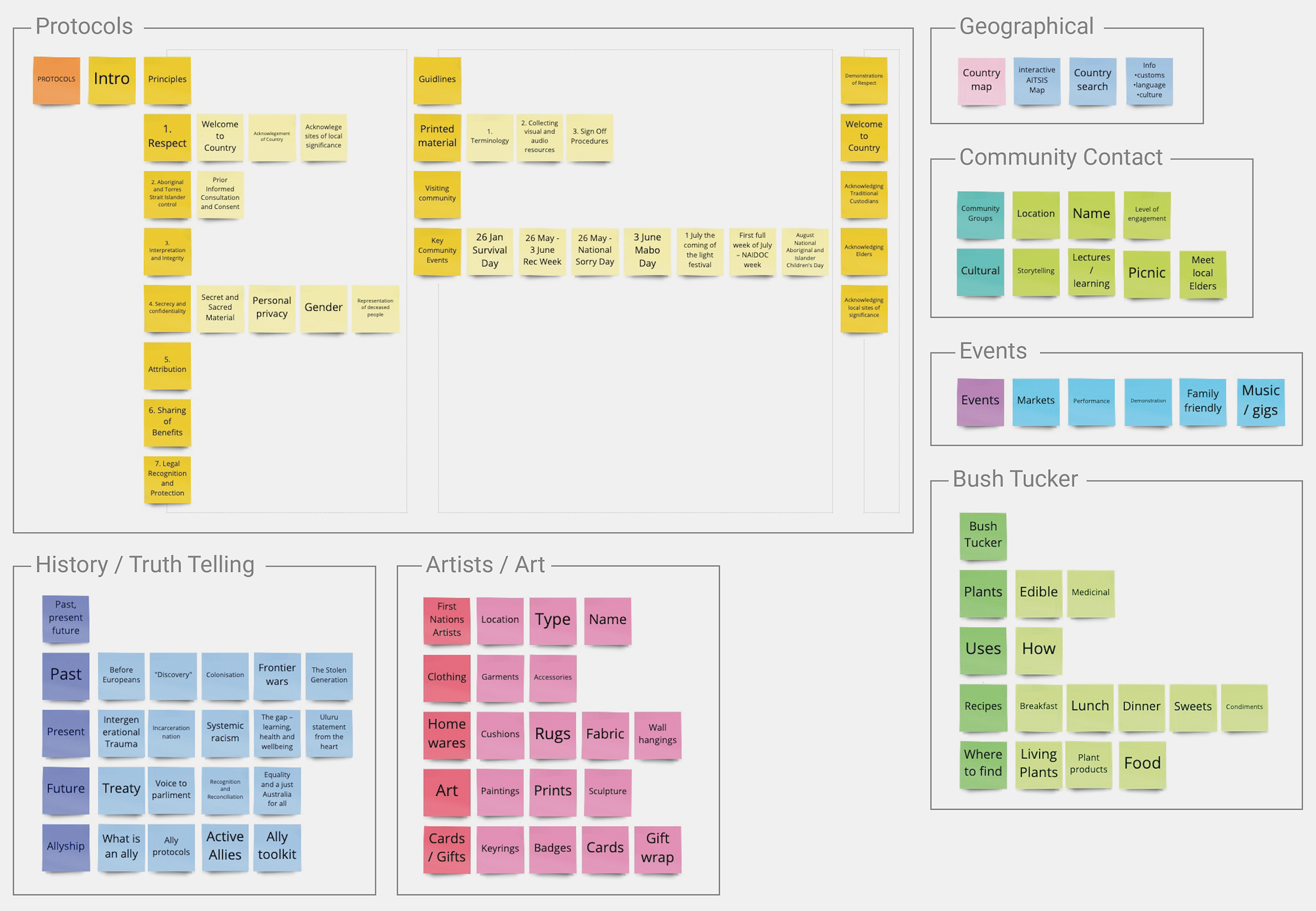 Breaking down numerous topics into distinct categories. There is so much content to consider and categorising it is critical to ensure a sound user experience. I managed to get it to a pretty good place, but when revisiting the card sorting, I could see there were refinements to certain groupings I would still like to make.