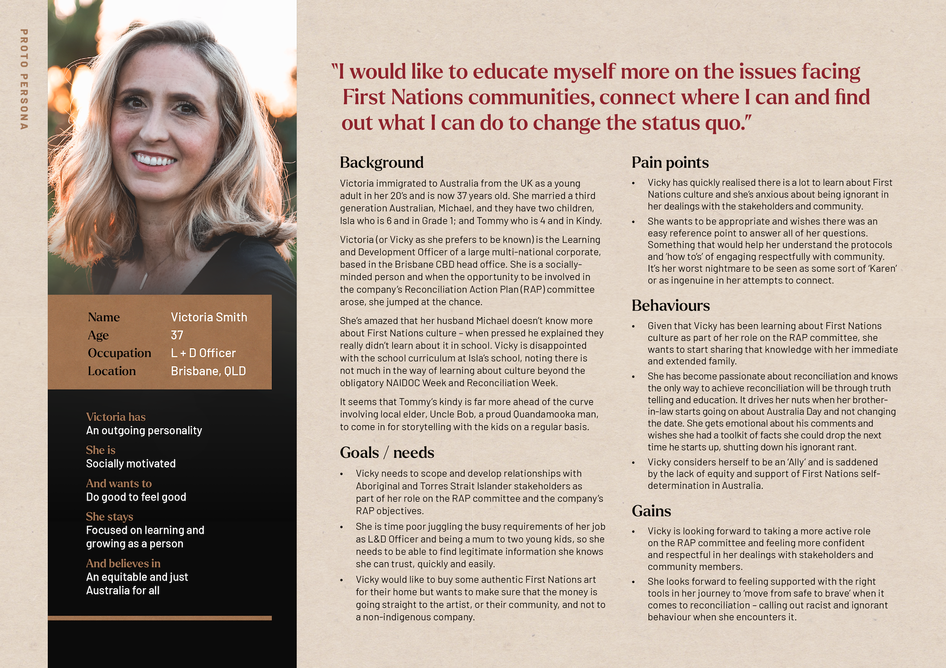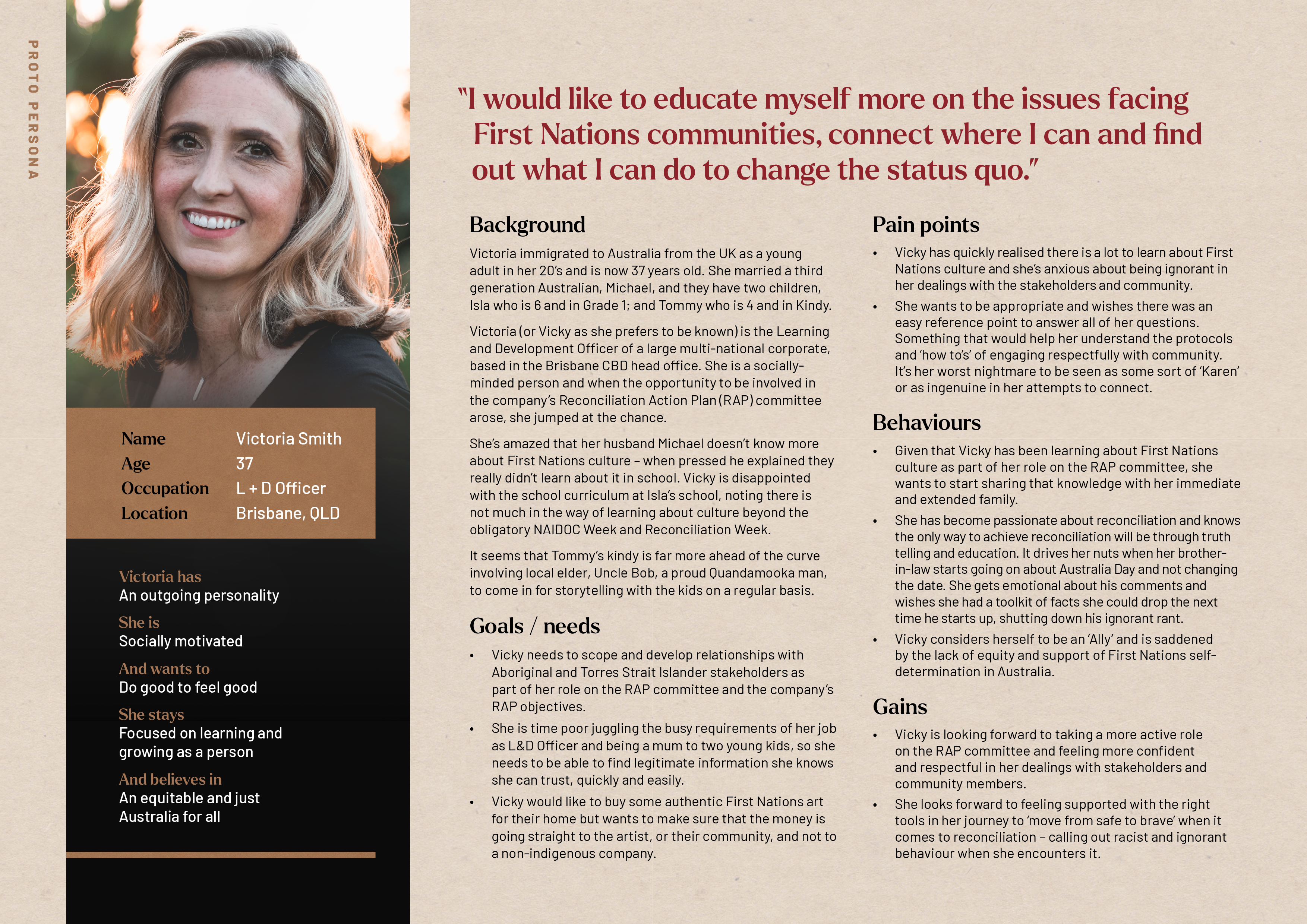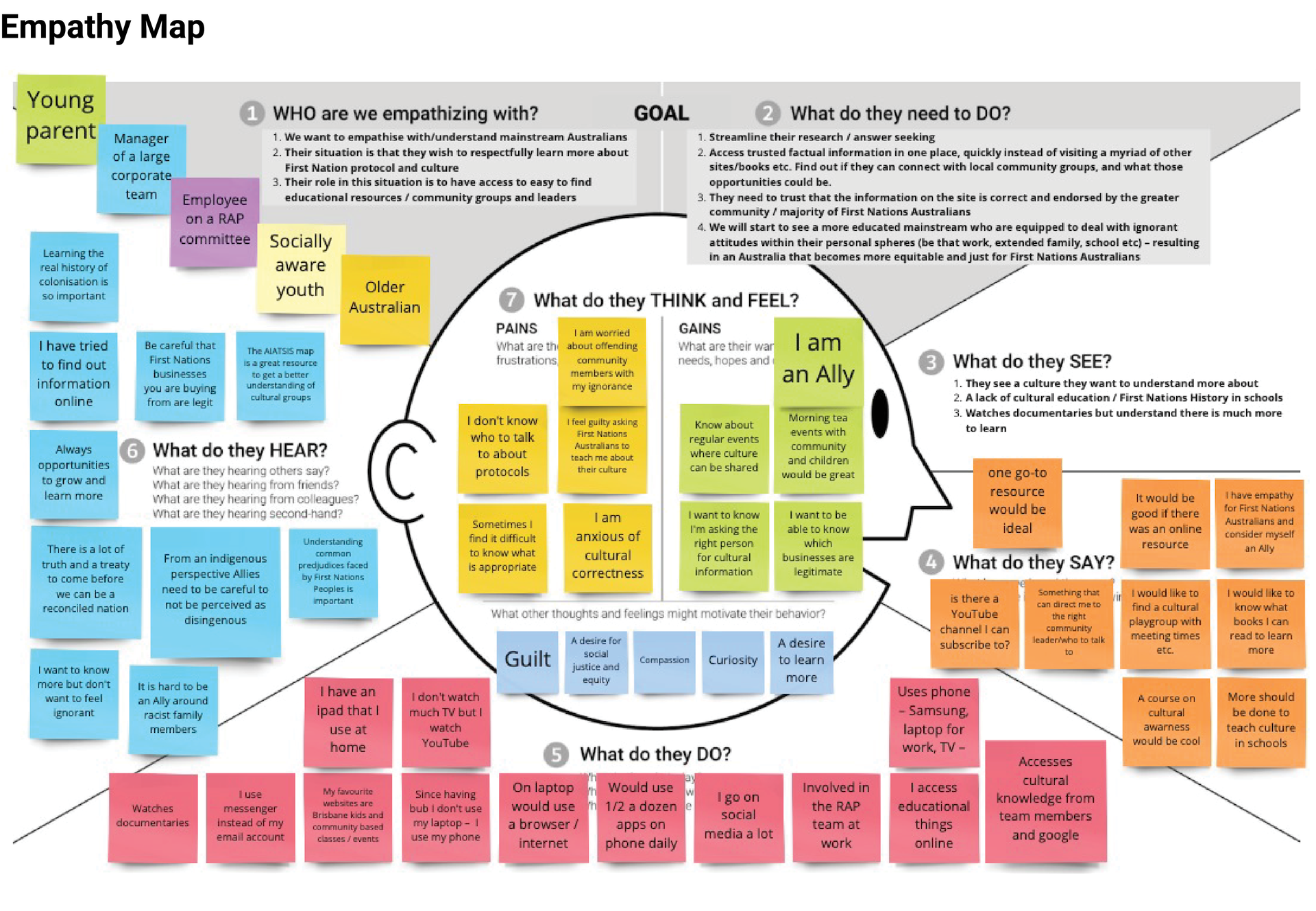 "How might we give users access to information on First Nations culture and protocols so that they are better equipped and educated in their dealings with community?"