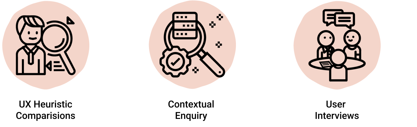 As a team of 4 designers, we established that the most appropriate research methods for this project were as follows: