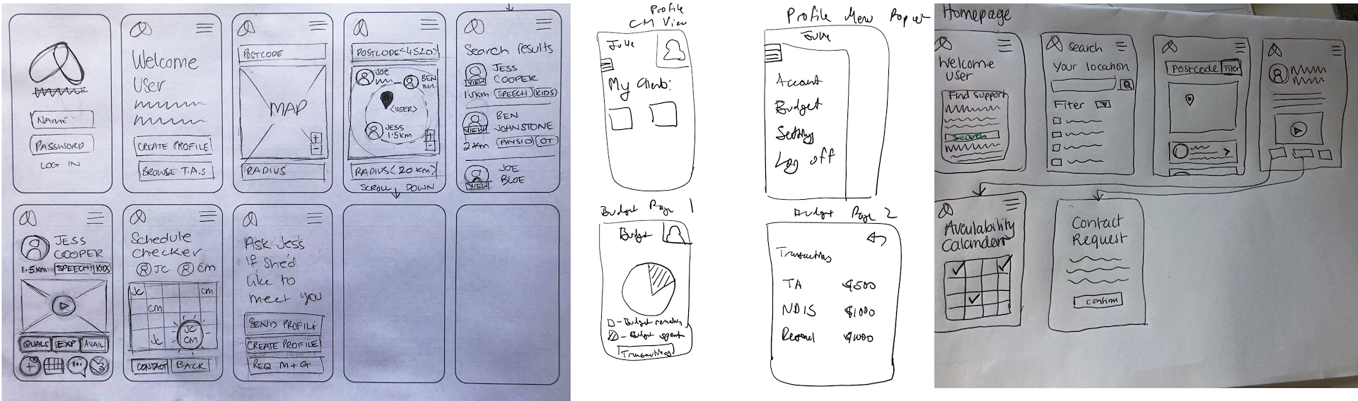 Lastly, as this service is designed to help carer's NDIS budgets extend further, we wanted to include a budget status widget somewhere, so the user was aware how much money they could spend on additional therapy.